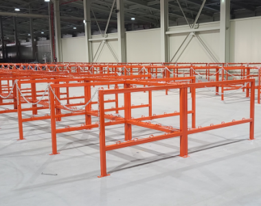 A bundle that is integrated with a storage rack for storing and organizing cylinders and a rack for dispensing in the production process.